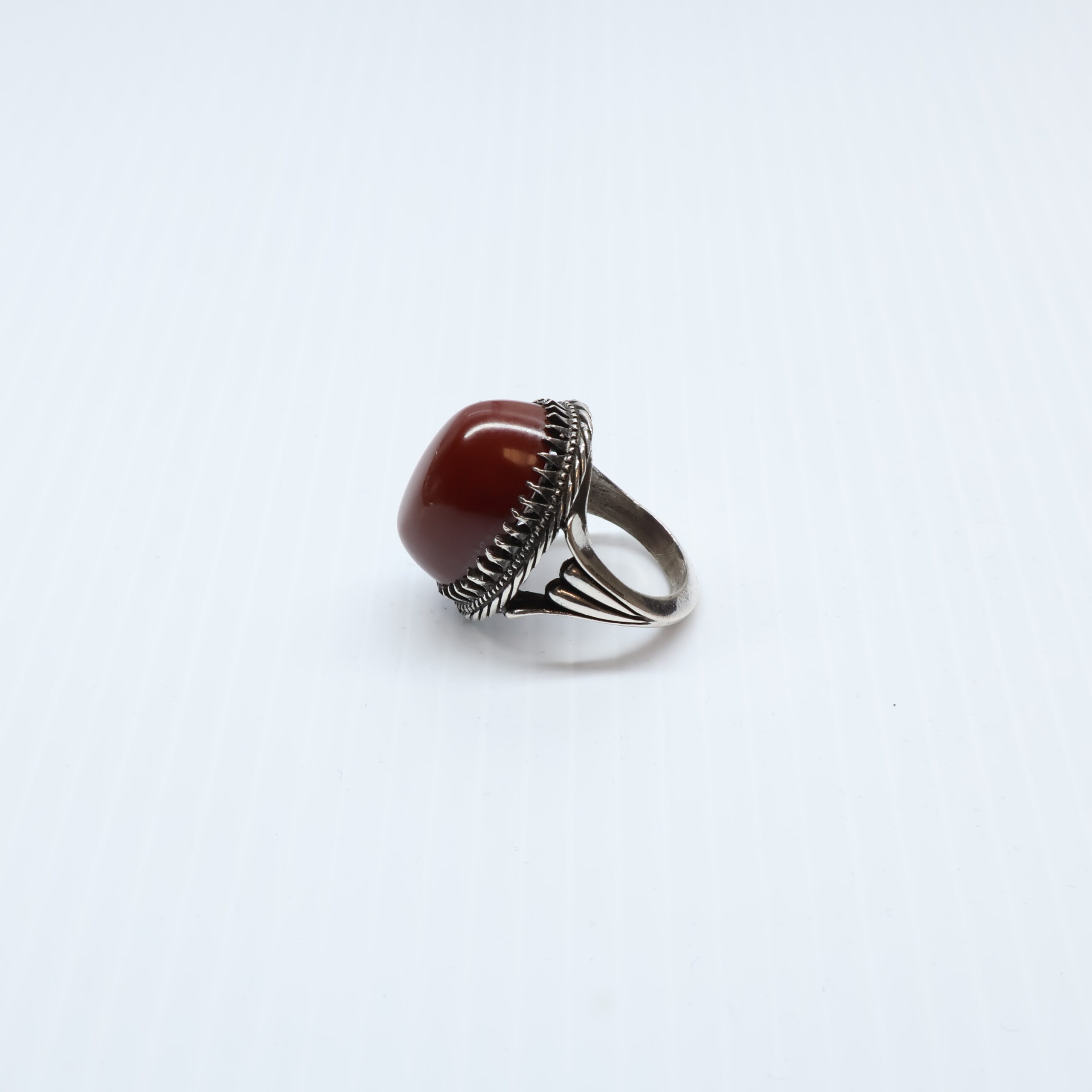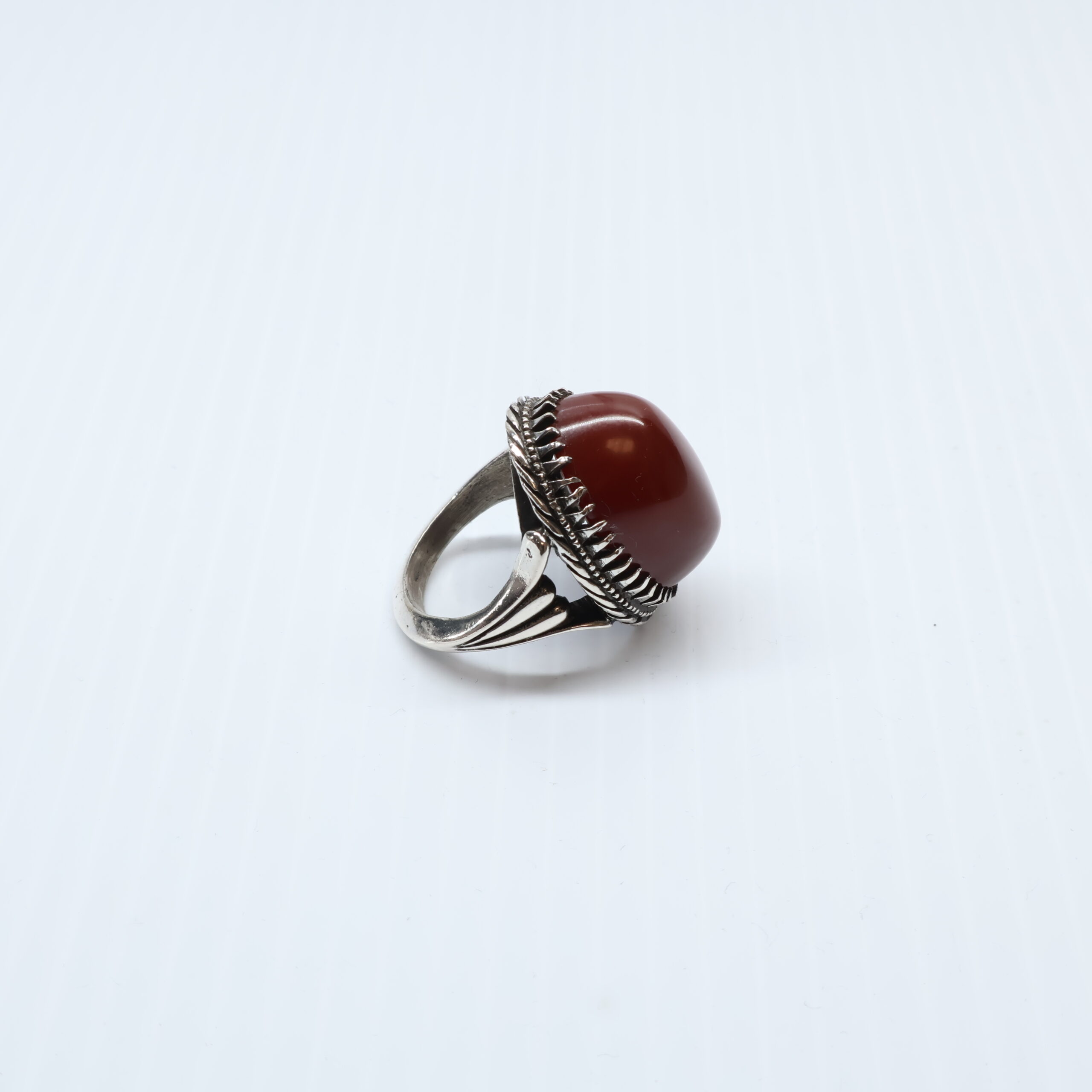 Cette bague en argent 925 est une découverte rare pour tout collecteur de bijoux. Fabriqué avec l’agate Yéménite orange naturel, La conception complexe et l’attention aux détails font de cette bague un incontournable pour tous ceux qui apprécient les bijoux.L’Aqeeq yéménite (ouagate du Yémen) est une gemme, plus précisément une variété d’agate, très recherchée pour sa qualité, sa beauté et sa signification culturelle et spirituelle. On la trouve dans diverses couleurs, les tons rouges et brun-rouge étant particulièrement prisés, et elle est utilisée dans la fabrication de bijoux, de bagues et de chapelets de prière.