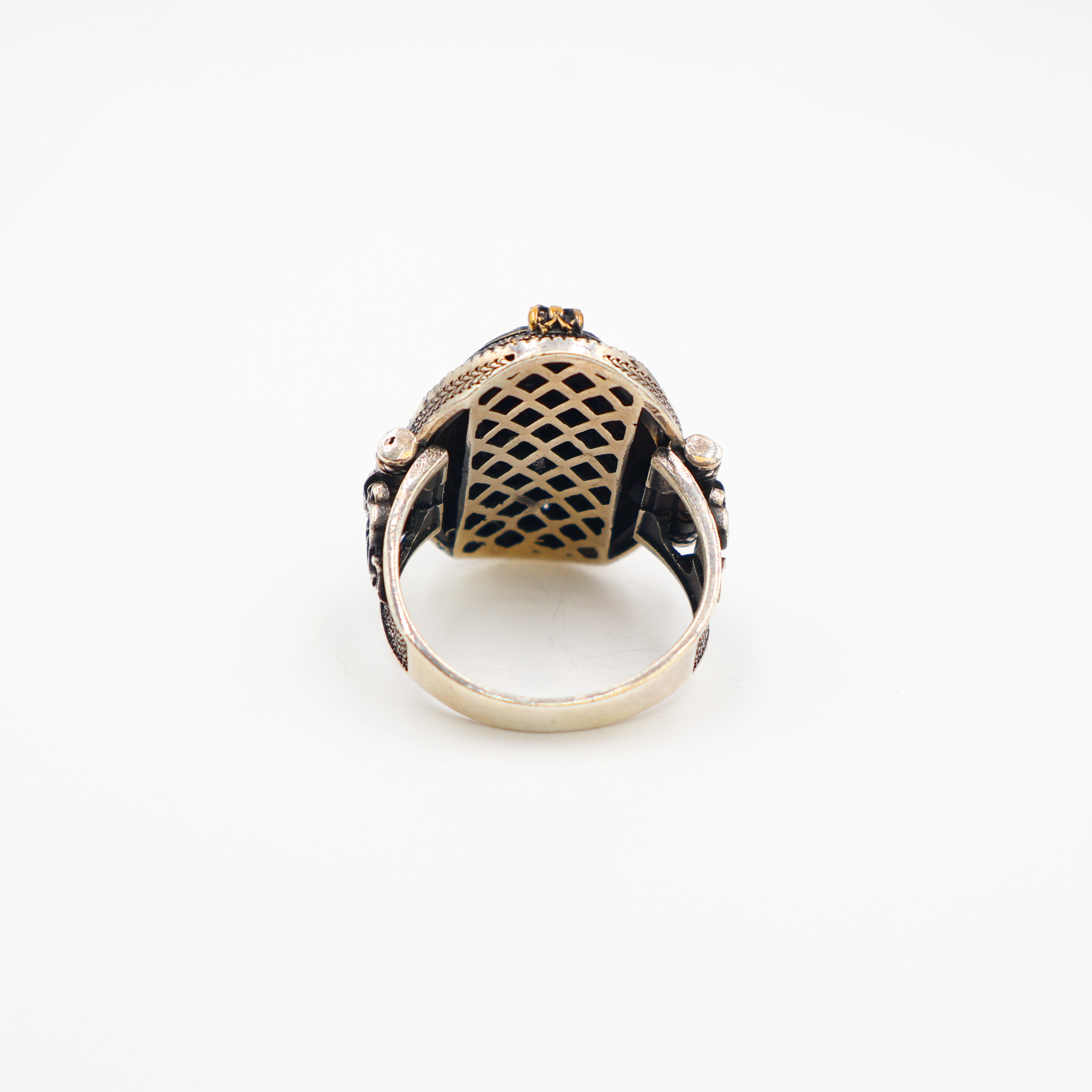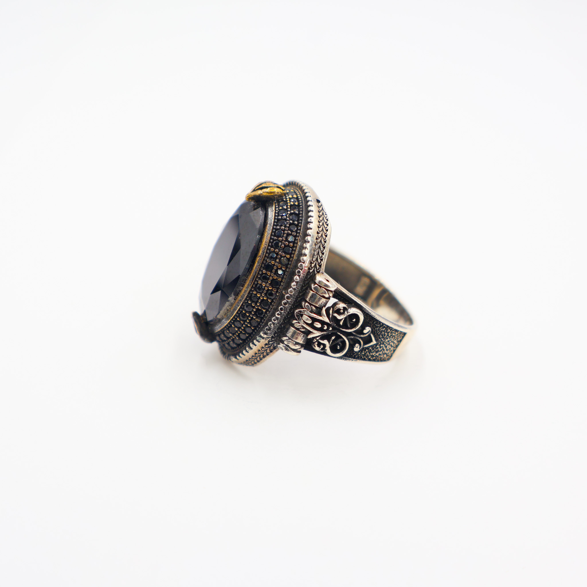 Son anneau en argent 925 , redimensionnable est orné de motifs en forme traditionnelle avec petites pierres zircon noir, particulièrement travaillés. Cette chevalière en argent pour homme se mariera facilement avec vos autres bijoux homme comme la gourmette en argent massif, les bracelets fantaisie à perles, le pendentif et les boucles d’oreilles homme ou autres bagues chevalières et anneaux en argent ou en acier.