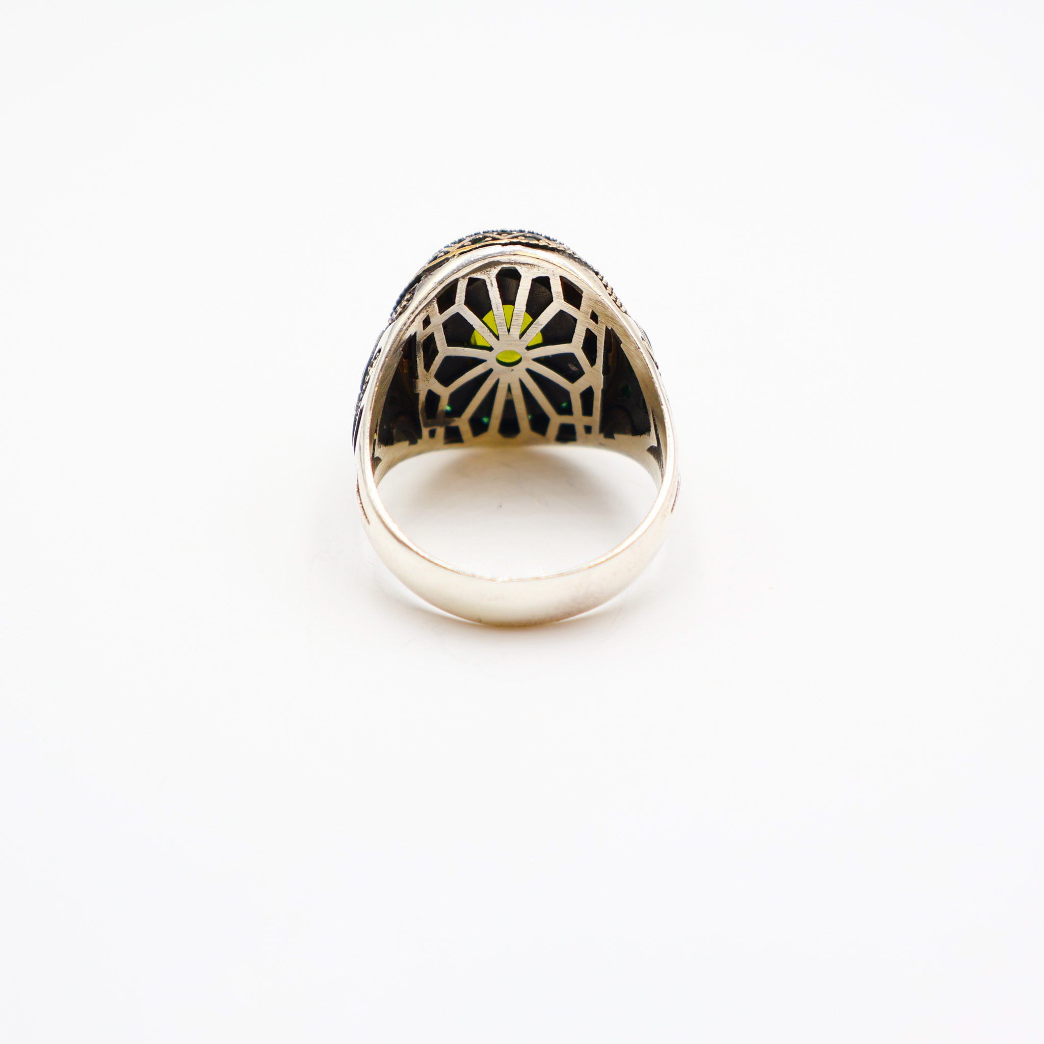Bague Homme en argent avec pierre verte